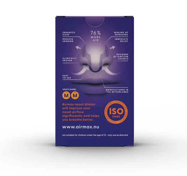 Deze medium maat anti-snurkers van de Airmax Neusspreider zijn comfortabel te dragen en kunnen helpen bij snurken, benauwdheid tijdens verkoudheid of allergieën, en zorgen voor een verbeterde luchtinvoer zonder zichtbaar te zijn aan de buitenkant van de neus.