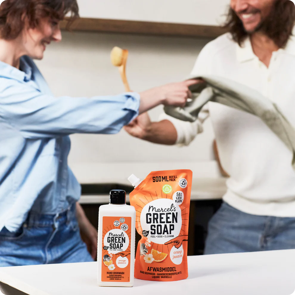 Marcel’s Green Soap maakt schoonmaken duurzaam én plezierig. De afwasmiddelen zijn volledig plantaardig, vrij van schadelijke stoffen en verpakt in milieuvriendelijke refills. Zo zorg je niet alleen voor een schone vaat, maar ook voor een schonere wereld.