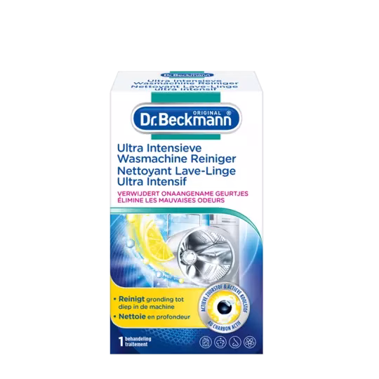 Dr. Beckmann Ultra Intensieve Wasmachine Reiniger met actieve koolstof maakt grondig schoon. Het verwijdert dankzij de speciale formule direct onaangename geurtjes uit je wasmachine. Daardoor stinkt de machine niet meer en behoudt de was haar frisse wasgeur, eindelijk!