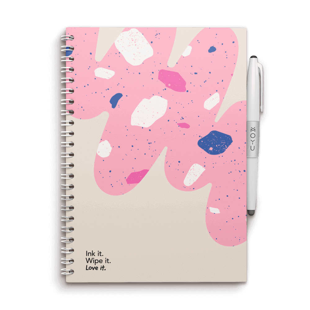 Ervaar uitwisbaar steenpapier met de Flamingo Desert notitieboek van MOYU. Schrijf op water- en scheurbestendige pagina’s van 100% recyclebaar steenpapier. Je kan de pagina’s tot 500x hergebruiken!