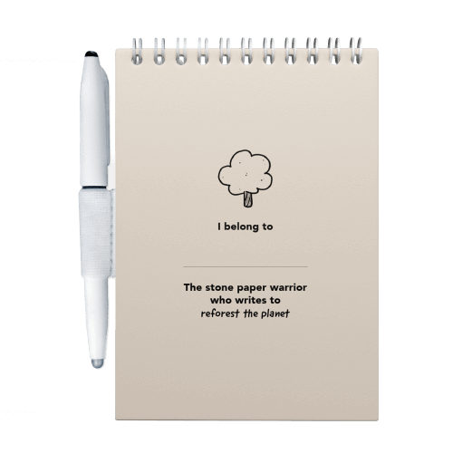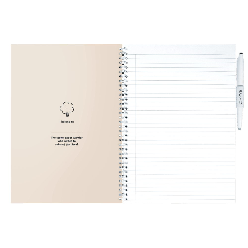 A flamingo pink, desert sand-inspired cover with a smooth writing experience on water & tear resistant pages made from 100% recyclable stone paper.
