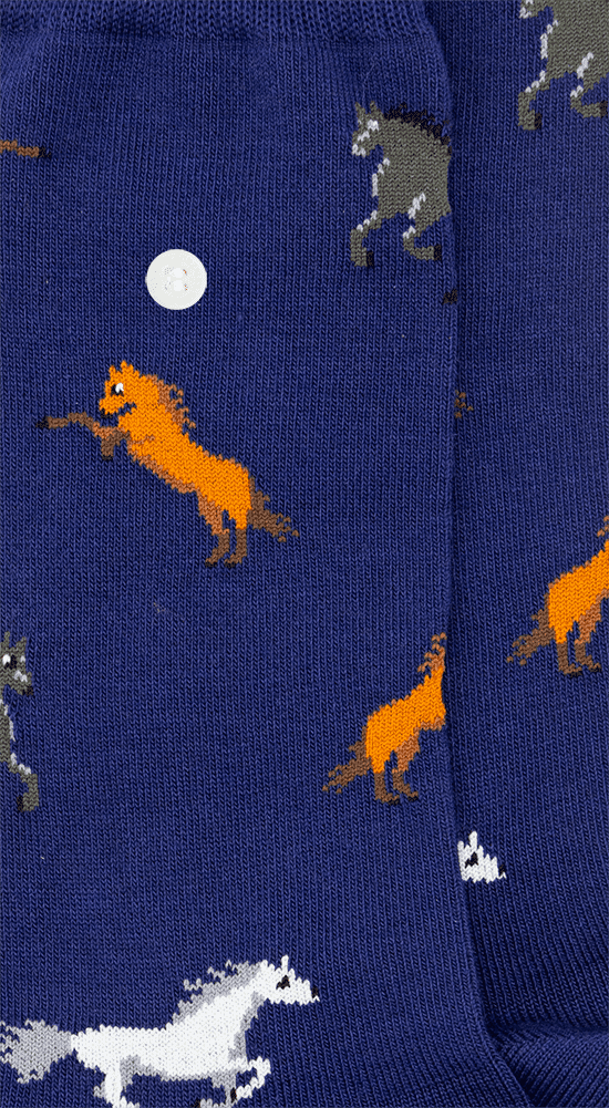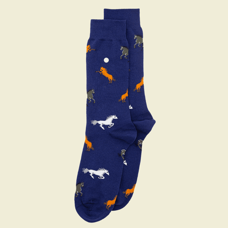 This sock is made from high quality combed cotton and an 168 needle construction which make for a very comfortable and durable sock. Our socks are build to last and Horses is no exception.