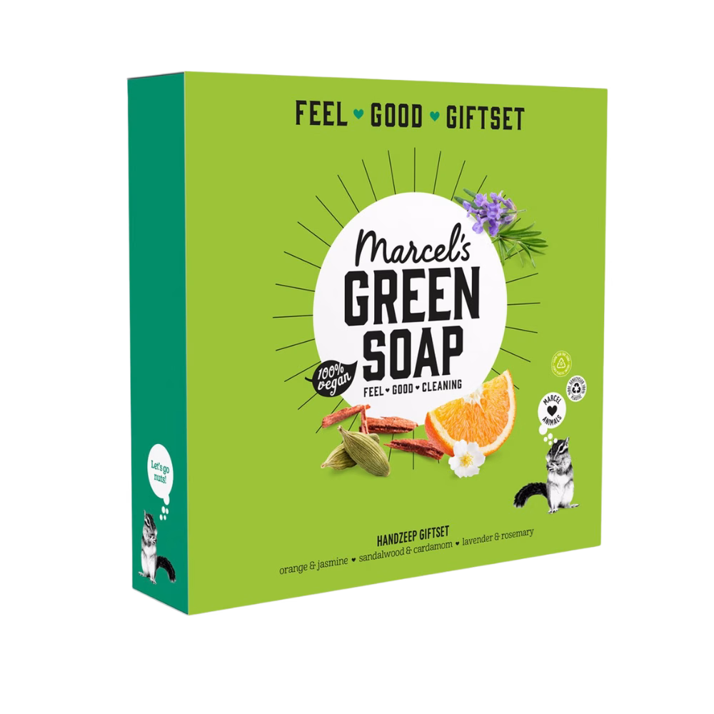 Wat is er fijner dan die persoon waar je van houdt een mooi cadeau geven? Met deze giftbox kan je moeder, neef, huishoudhulp of wie dan ook een cadeautje verdient lekker handen blijven wassen. Met een lach je handen wassen, dat doe je met Marcel’s Green Soap. En je doet er het milieu ook nog eens een cadeau mee!
