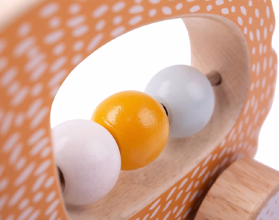 De egel heeft mooie zachte kleuren en drie kralen waarmee kinderen leren tellen. De houten figuur is stevig en kan goed tegen een stootje. De egel heeft vilten oortjes waardoor kinderen kennismaken met verschillende structuren.