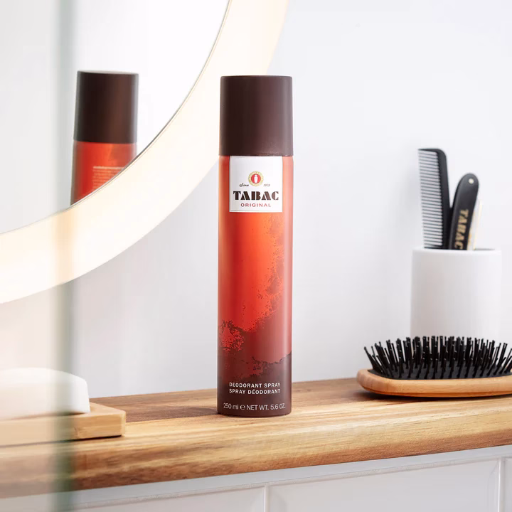 De TABAC ORIGINAL Deodorant Aerosol Spray biedt niet alleen deze iconische geur, maar beschermt ook langdurig tegen lichaamsgeur tot wel 24 uur. De formule droogt de huid niet uit en geeft een aangenaam fris gevoel gedurende de hele dag.